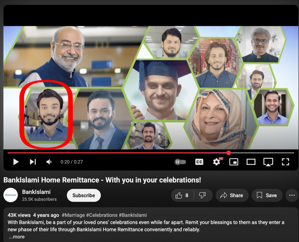 He was also featured in Bank Al Islami TVC which was widely played on the national television.